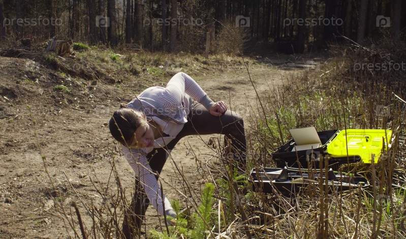 Эколог фотографирует молодые деревья
