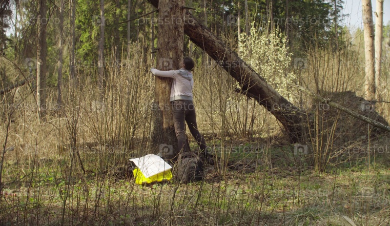 Эколог измеряет повреждение дерева