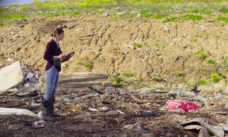 Эколог во время исследования мусорной свалки
