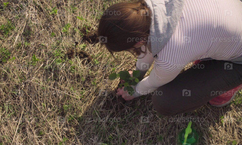 Зеленая активистка сажает небольшое дерево
