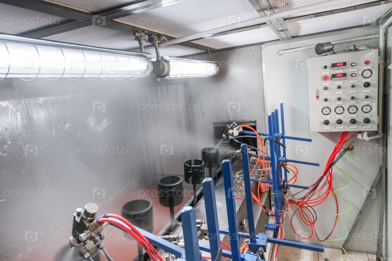 Цех покраски деталей на конвейере