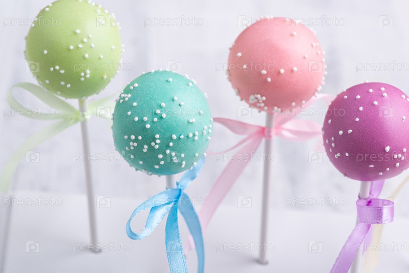 Красочные кейк-попсы на размытом фоне