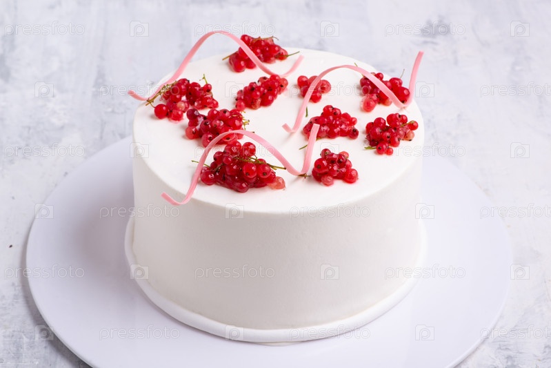 Снимок сверху белого торта, оформленного красной ягодой на белой тарелке