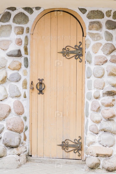 Деревянная дверь с металлической защелкой, старый экстерьер здания