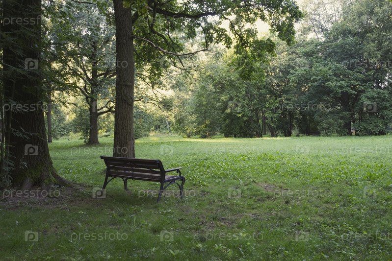 Скамейка в тени под дубом