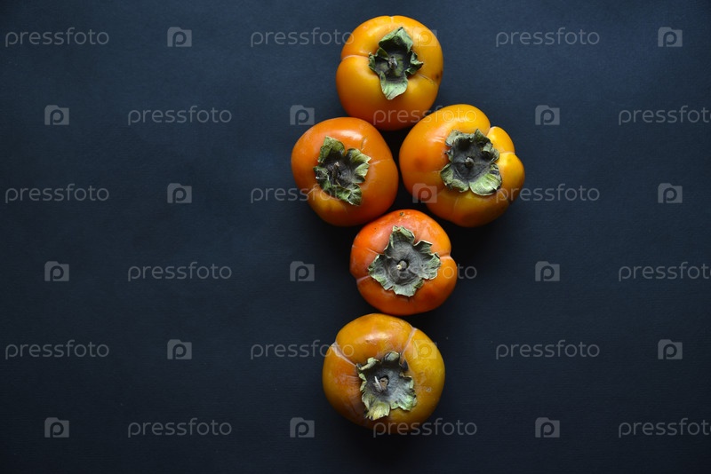 Оранжевые плоды хурмы на черном фоне. Спелые и сочные плоды хурмы крупным планом