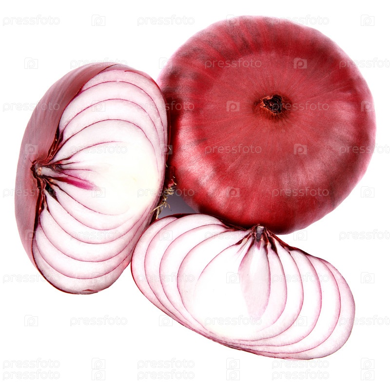 Целый и половинный красный лук для салата изолированы на белом фоне