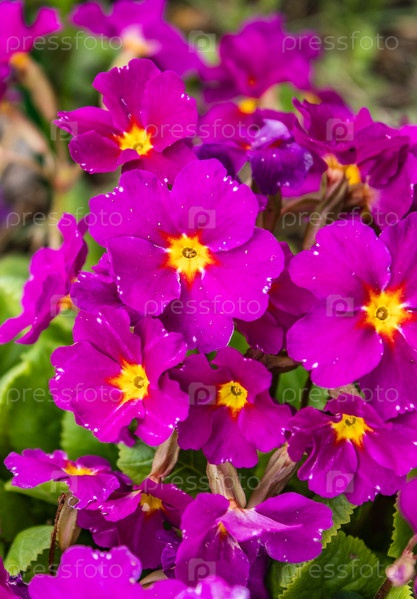 Primula vulgaris, первоцвет, цветок ранней весны. макрос вид сверху крупным планом