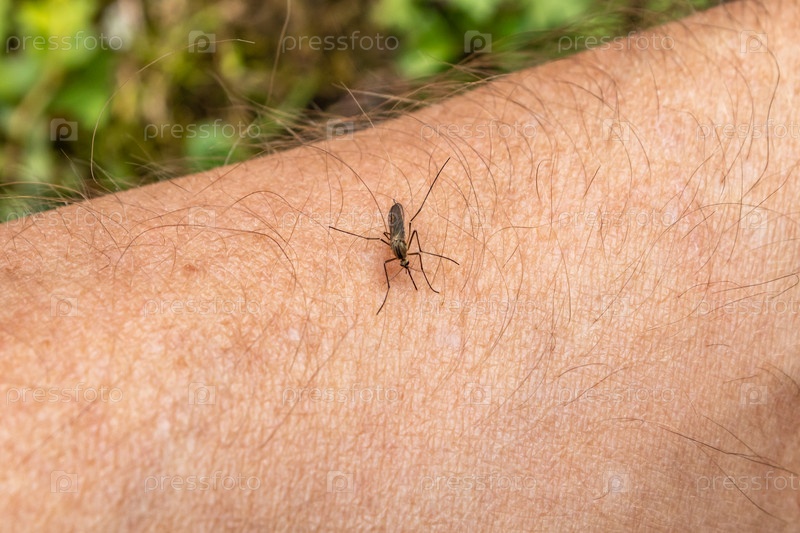 Один комар садится на руку, прокалывает кожу и сосет человеческую кровь. Вызывает заболевание малярия. Комары опасные переносчики болезней