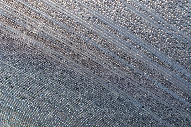 Панель изготовлена из поликарбонатного пластика для теплицы. линии капель воды на поверхности в качестве абстрактного фона. крупным планом