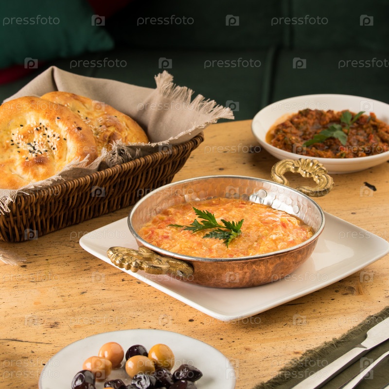 Снимок крупным планом вкусно приготовленной яичницы-болтуньи с помидорами