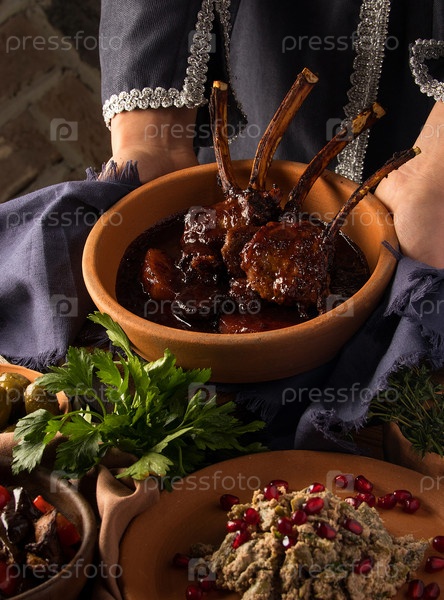 Вертикальный снимок официантки, предлагающей стейк из томагавка