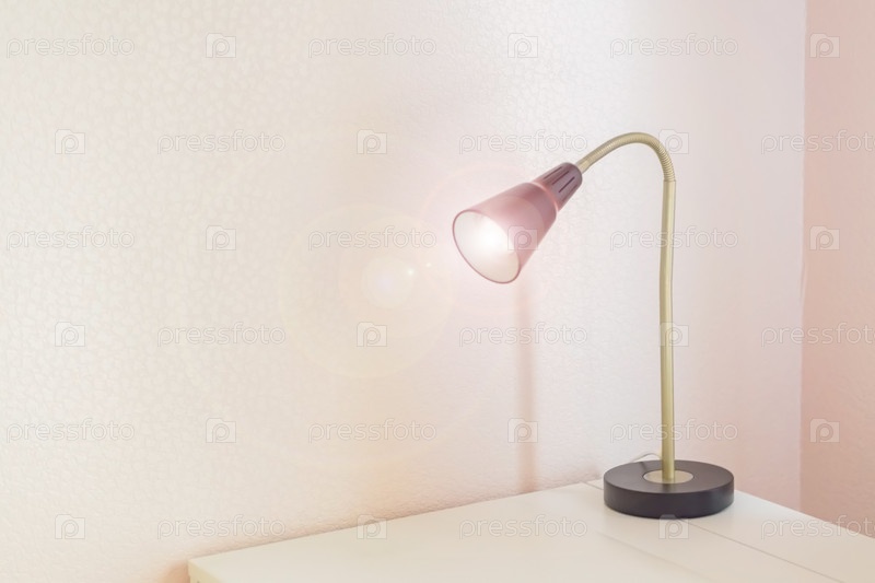 Настольная лампа с подсветкой белого стола, концепция внештатного рабочего места