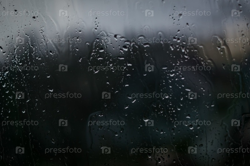 Капли дождя на темном оконном стекле. Абстрактная текстура фона