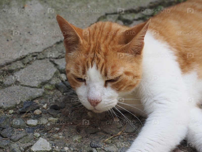 Оранжево-белая домашняя полосатая кошка, одомашненная домашняя кошка