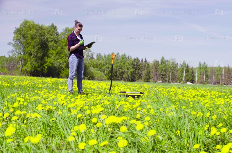 Женщина-эколог что-то отмечает на карте
