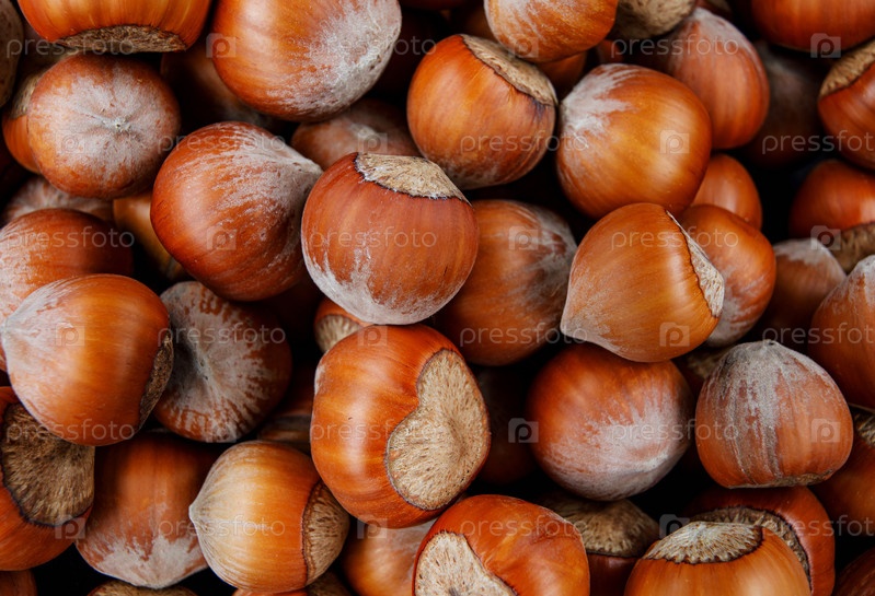 Фон фундука. Целые спелые орехи