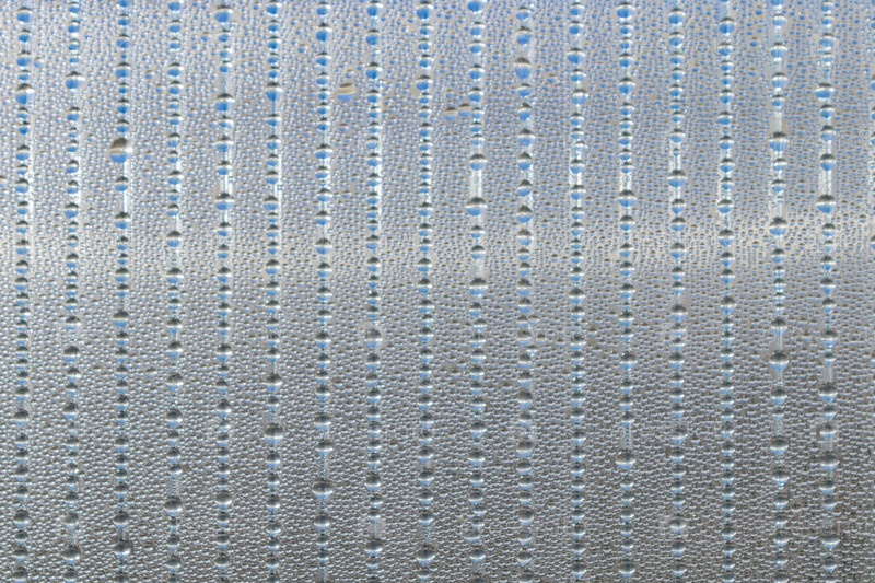 Панель изготовлена из поликарбонатного пластика для теплицы. линии капель воды на поверхности в качестве абстрактного фона. крупным планом
