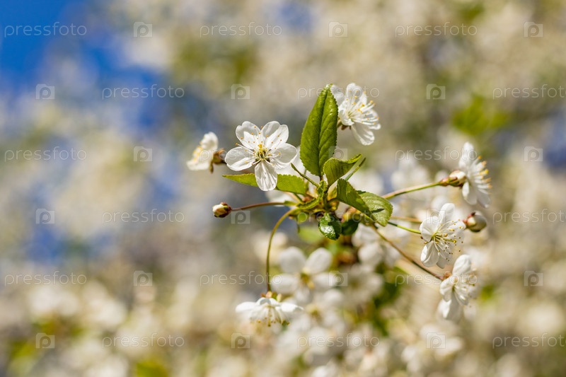 Ветки цветущего дерева. Вишневое дерево в белых цветах. весенний солнечный день