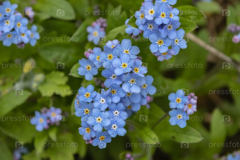 Голубые памятники, Myosotis sylvatica, трава скорпиона, цветок на весенней лужайке