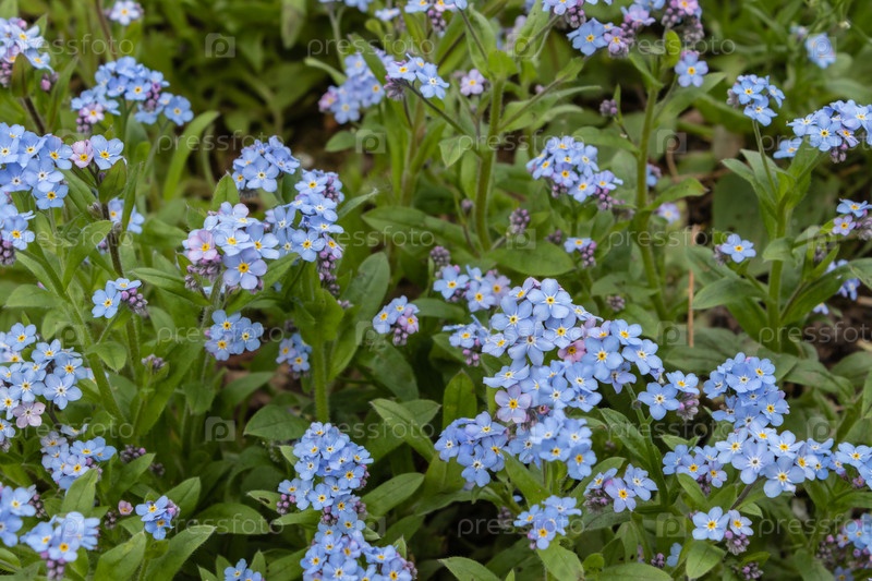 Голубые памятники, Myosotis sylvatica, трава скорпиона, цветок на весенней лужайке
