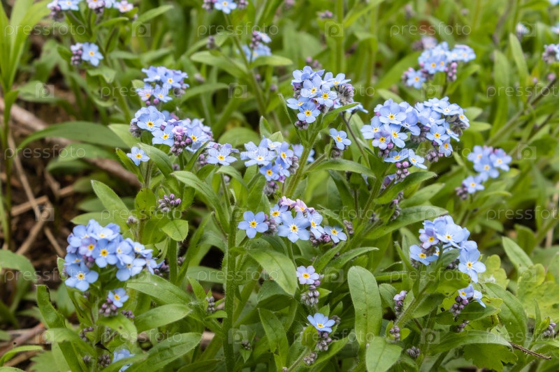 Голубые памятники, Myosotis sylvatica, трава скорпиона, цветок на весенней лужайке