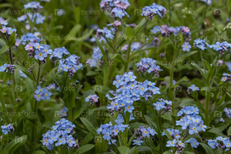 Голубые памятники, Myosotis sylvatica, трава скорпиона, цветок на весенней лужайке