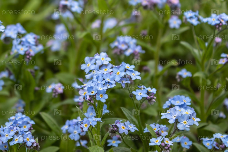 Голубые памятники, Myosotis sylvatica, трава скорпиона, цветок на весенней лужайке