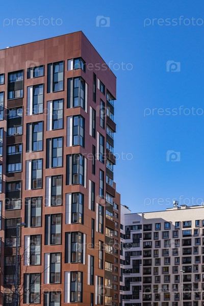 Современный многоквартирный дом с красочными фасадами на окраине города. Жилой комплекс «В лесу», Москва, Россия