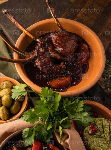 Крупный план стейка из томагавка и закусок