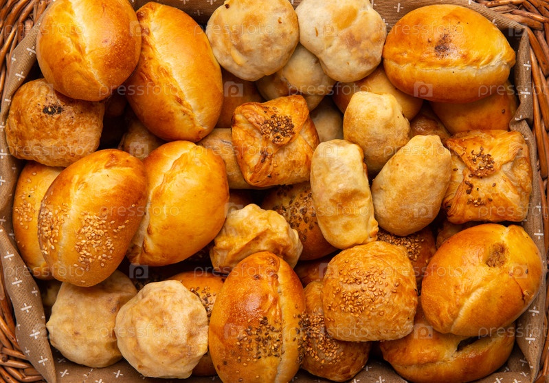 Вид сверху на разные виды хлеба в корзине