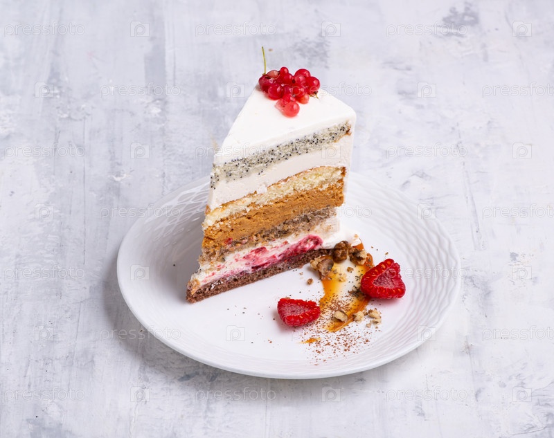 Крупный план нарезанного торта на белой тарелке