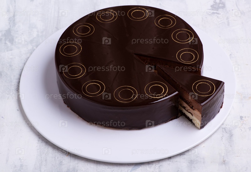 Шоколадный торт на белой тарелке, вид сверху