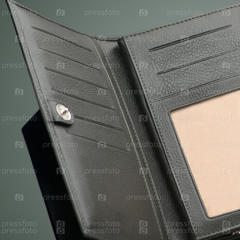 Крупный план модного кожаного мужского кошелька на темном фоне