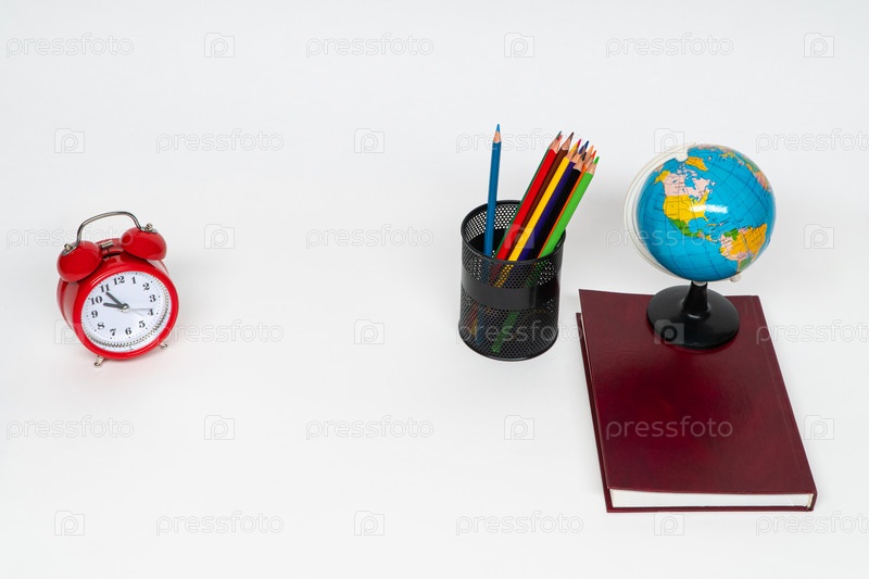 Некоторые образовательные школьные принадлежности на белом фоне