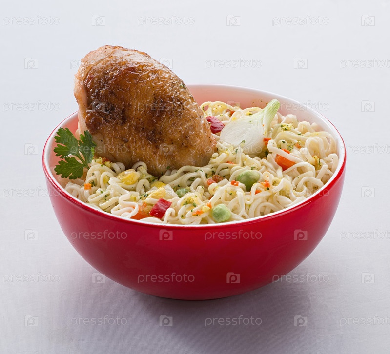 Лапша в красной миске