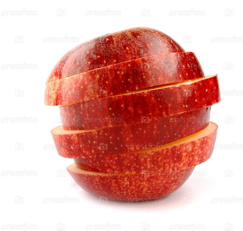 Нарезанное колечками красное яблоко изолировано на белом фоне