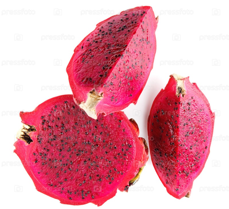 Нарезанный фрукт дракона, изолированные на белом фоне. Питайя, драконий фрукт
