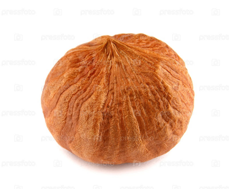 Ядро лесного ореха изолировано на белом фоне
