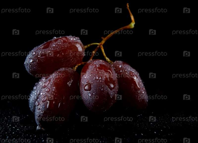 Несколько сочных ягод винограда выделены на черном фоне