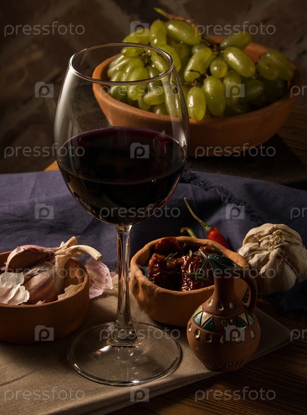 Бокал вина на столе с блюдами