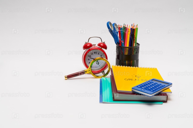 Школьные принадлежности на белом фоне