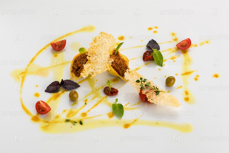 Декоративно украшенная еда на белом