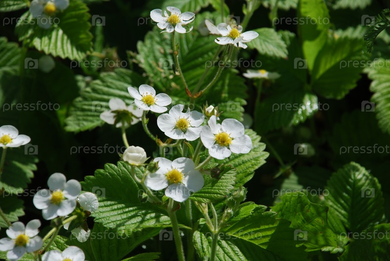 Клубника цветет под солнцем