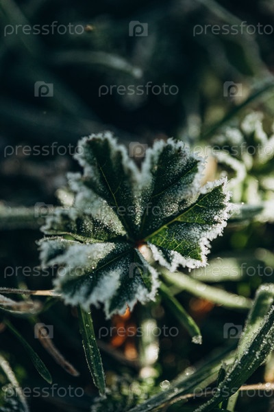 Абстрактный фон из травы, покрытой инеем/ травой покрытым инеем, первым снегом. Осенние заморозки