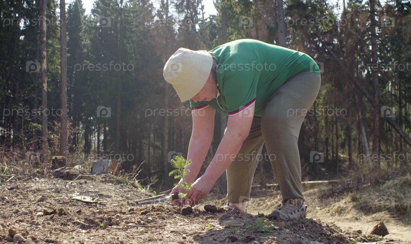 Старший волонтер сажает ель