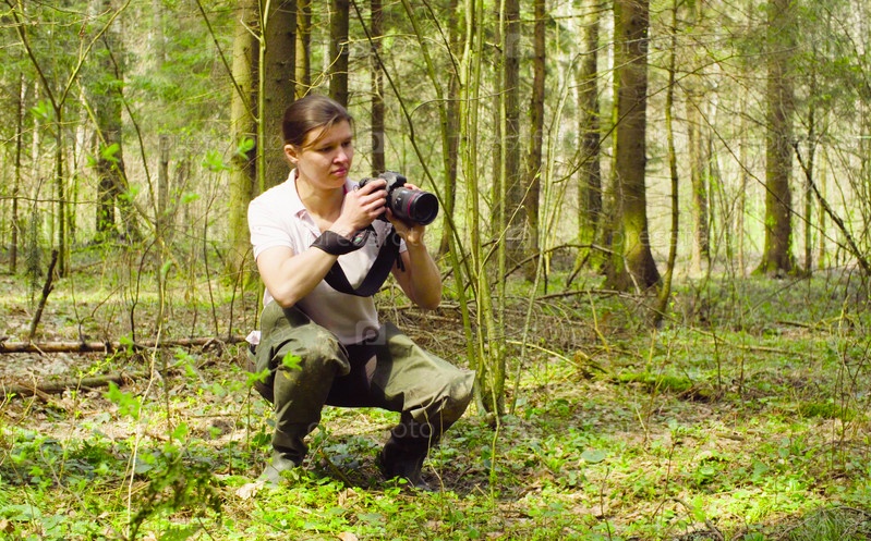 Эколог фотографирует в лесу