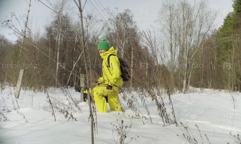 Женщина-эколог гуляет по глубокому снегу