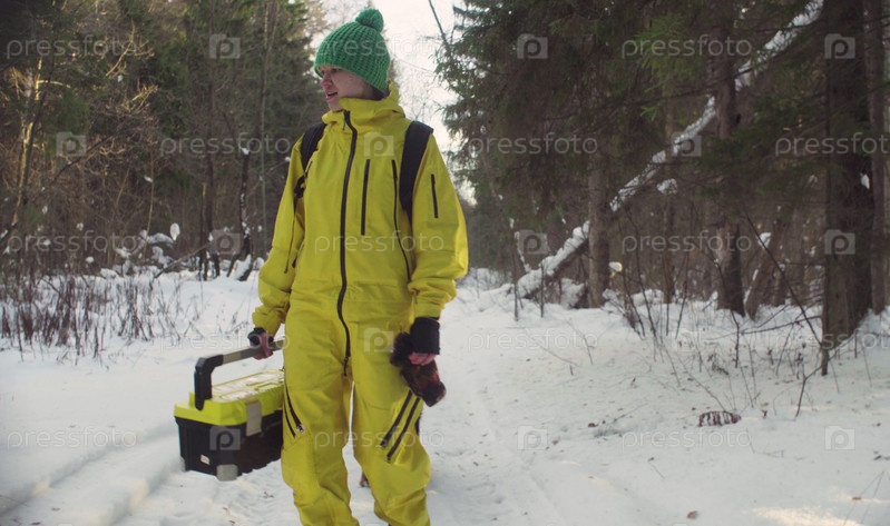 Эколог гуляет по зимнему лесу