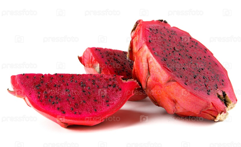 Нарезанный фрукт дракона, изолированные на белом фоне. Питайя, драконий фрукт